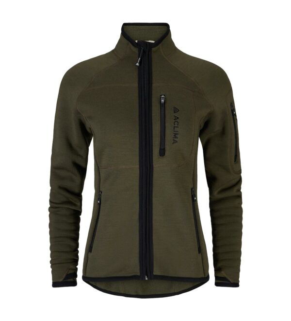 FleeceWool Jacket er en jakke med normal passform som sitter fint inntil kroppen. Jakken har 2 frontlommer, brystlomme og en lomme på armen, alle med glidelås. Dette er bekledningen for de kaldeste vinterdager der funksjonalitet og komfort er viktig. Den er laget i 93% ull (Merino) og med 7% polyamid som forsterkning. Dette gjør plagget mer slitesterkt, samtidig som det ivaretar den gode og myke FleeceWool-kvaliteten som Aclima er kjent for.