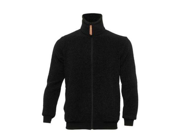 ReBorn Wool Terry Jacket er en jakke i ullfrotté med små løkker på utsiden. Den har høy krage, dype lommer på sidene og en romslig passform. Den har en fleece-lignende innside med børstet ull som isolerer godt, og ullen er resirkulert fra overskuddsmateriale fra vår egen fabrikk i Estland. Vi har sett på de mest bærekraftige løsningene, og logo og zip puller er laget av fiskeskinn. Dette er en myk og behagelig jakke som passer godt til både friluftsliv og til hverdags.