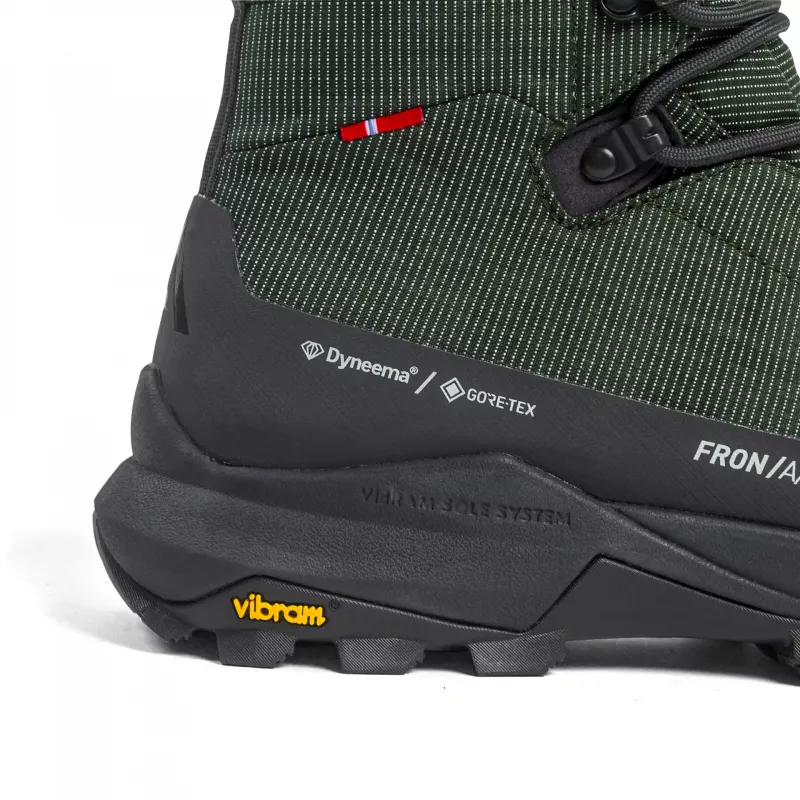 Skoens overdel er laget av en solid Dyneema®/nylon-blanding. GORE-TEX sørger for vanntette sko med pustende egenskaper.