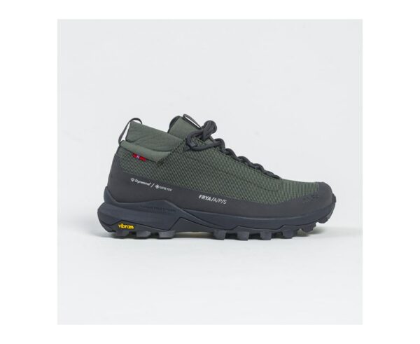 Alfa Frya kombinerer Alfas fjellskompetanse med moderne materialer og teknologi for å levere en lett og presis sko til stiturer i variert terreng. Den unike NORTIK-lesten gir foten støtte og lar deg bevege deg naturlig, selv med sekk på ryggen. Overdelen består av en slitesterk blanding av Dyneema® og GORE-TEX, som holder vann ute og sørger for god pusteevne. Den vanntette gamasjen holder skitt og snø ute, mens Vibram®-sålen med Megagrip sørger for trygt grep – uansett underlag.
