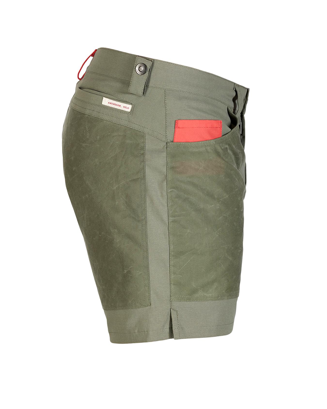 Sommershorts fra Amundsen Sports. Laget i stretchy cordura som er svært lett og føles behagelig mot huden. Front lommer og seteregionen er forsterket med vokset bomulls canvass som gir en kul look og gir shortsen ett særpreg.