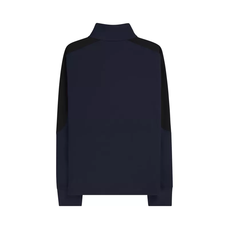 Den halvlange glidelåsen i front gir mulighet for rask ventilasjon under fysisk aktivitet, mens forsterkede paneler på skuldre og albuer øker slitestyrken ved bruk med sekk eller underlag. Designet er rent og funksjonelt, med subtile Amundsen-detaljer som understreker merkets karakteristiske håndverkskvalitet.