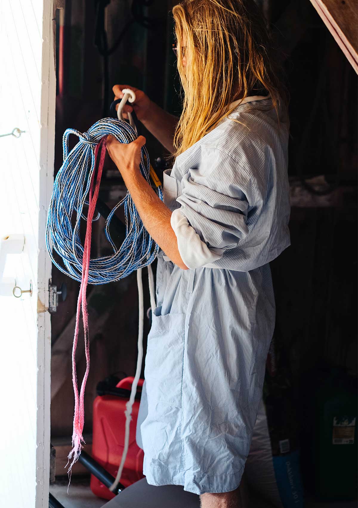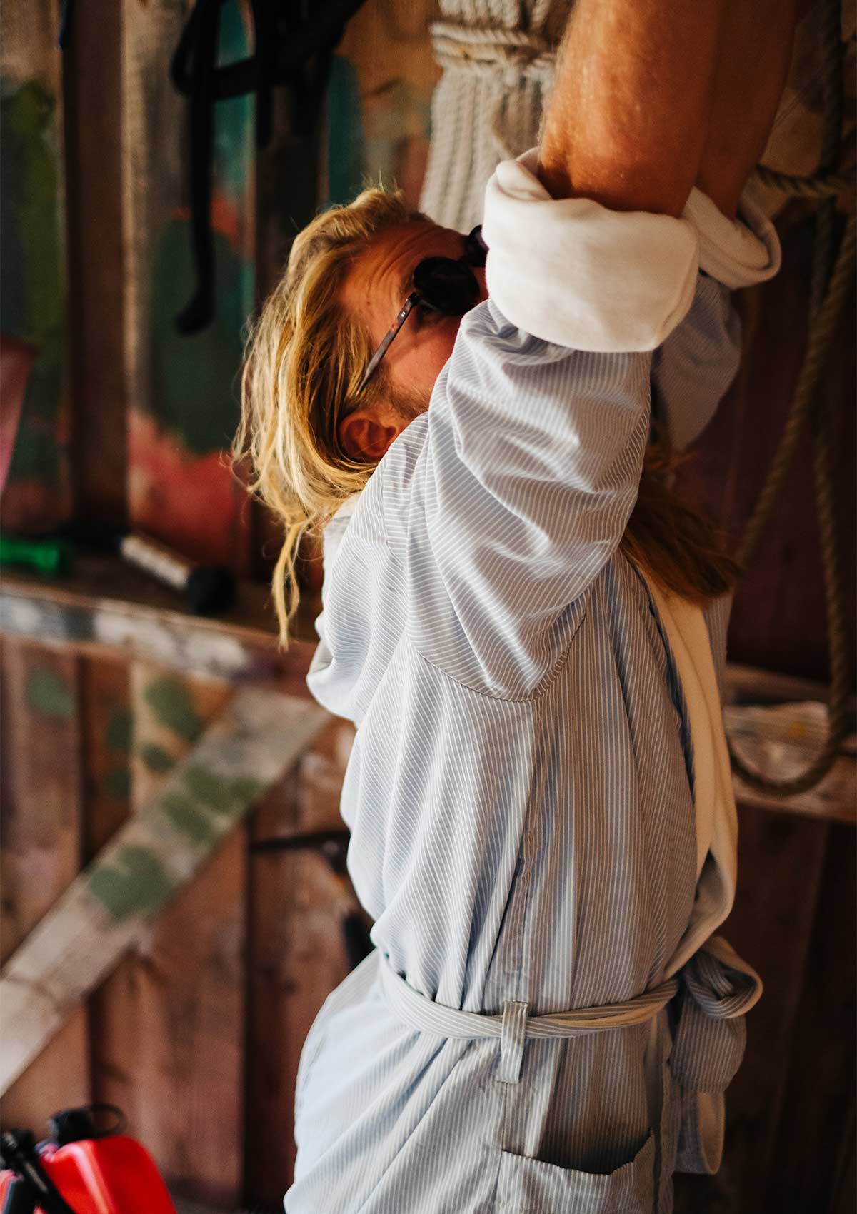 Tidlig morgenkåpe trykket i karakteristiske farger og striper i Carioca-stil fra Rio 1960-tallet.