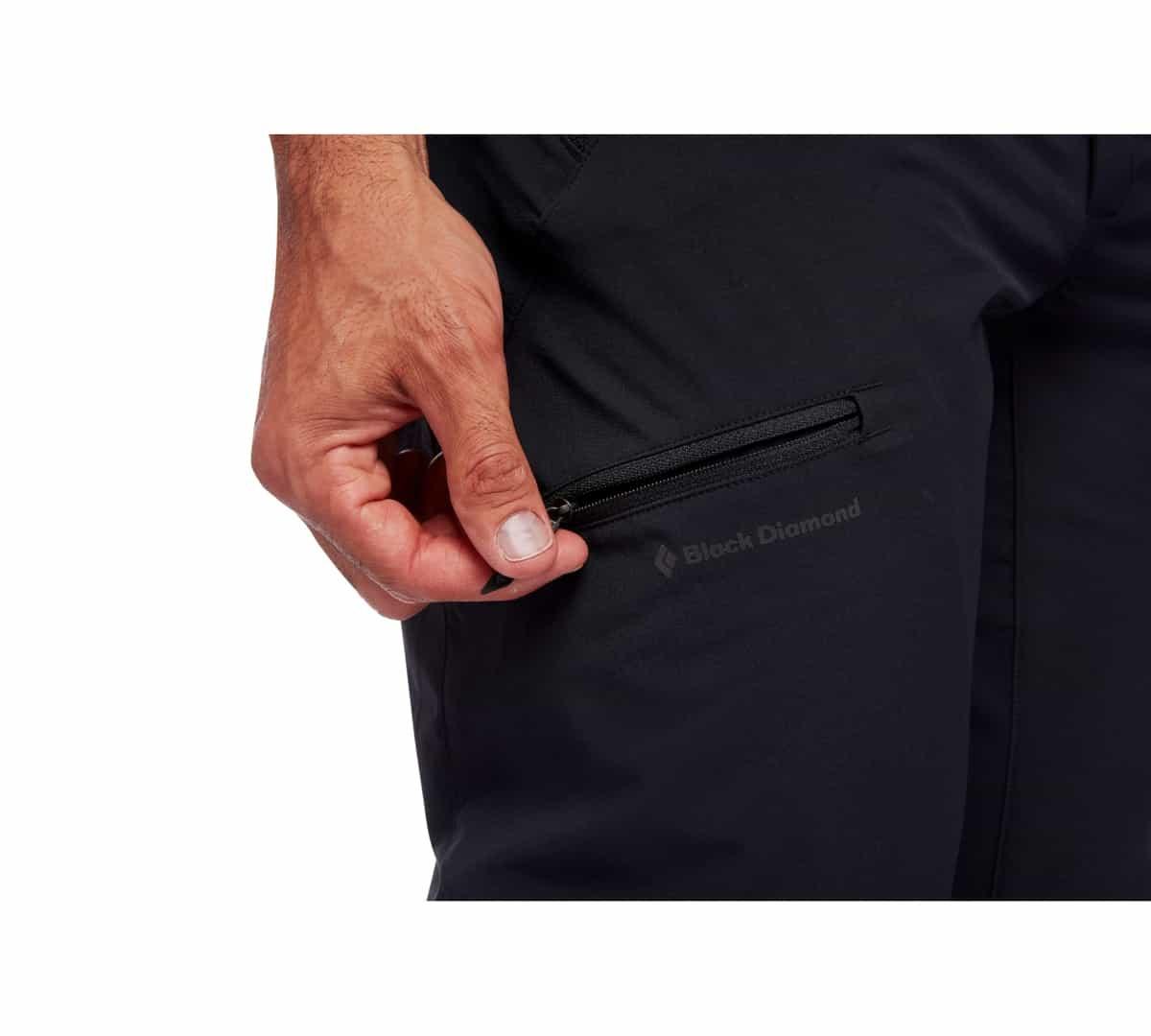 I tillegg til de tradisjonelle håndlommene, er det en baklomme og en lårlomme – alle med glidelåslukking og dessuten er de plassert for å være kompatible med klatreselen.