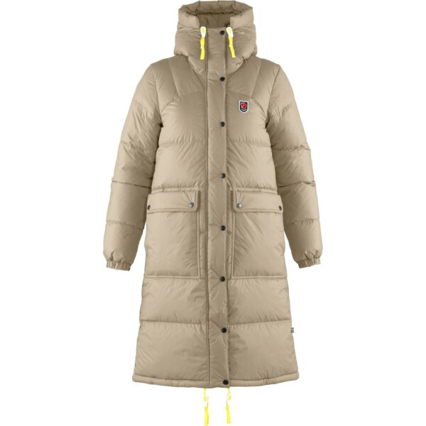 Lang og godt isolert dunparkas til vinteraktiviteter under veldig kalde forhold. Expedition Down Jacket er en ekstra lang parkasvariant av den klassiske Expedition Down Jacket fra 1974. Laget av resirkulert polyamid og polstret med en kombinasjon av dun og syntetisk isolering (omtrent 50 % hver). Polstringen distribueres i to lag – en til dun, en til syntetiske materialer – med en nøye utført konstruksjon som gir maksimal varme uten kalde områder. Den romslige hetten og sjenerøse lengden beskytter mot kald vind og gjør jakken god både til hverdagsbruk og skogsturer eller ute på isfiske. En del av Fjällrävens Expedition Series med ikoniske design, materialer hentet fra bærekraftig produksjon og stor pålitelighet under kalde forhold.