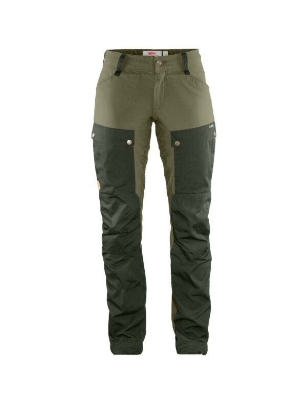 Svært slitesterk turbukse i Curved Fit for optimalisert passform. Ekstra vidde over sete og lår, med en markert midje slik at man unngår glippe i midjen bak. Buksen er tilpasset friluftsbruk hvor bevegelsesfrihet og slitestyrke er like viktig. G-1000 Eco på setet, forsiden av bena, og knærne og nedest på innsiden av bena. Setet og knærne er ytterligere forsterket med ekstra sterke sømmer, og innsiden av beina har dobbelt stofflag for å tåle slitasjen fra fjellstøvlene. En ventilasjonsåpning med glidelås fra kneet til hoften, samt en åpning nedover leggen slipper ut overflødig varme. Buksen har også forlenget gylf for ekstra ventilasjon. To benlommer med klaff, den ene med glidelås og den andre med nettinglomme for oppbevaring av småting. Høyt plasserte stikklommer slik at innholdet holder seg på plass også når du bøyer deg. Stroppejustering nederst på beina, samt kroker til å feste i fjellstøvler eller skisko.