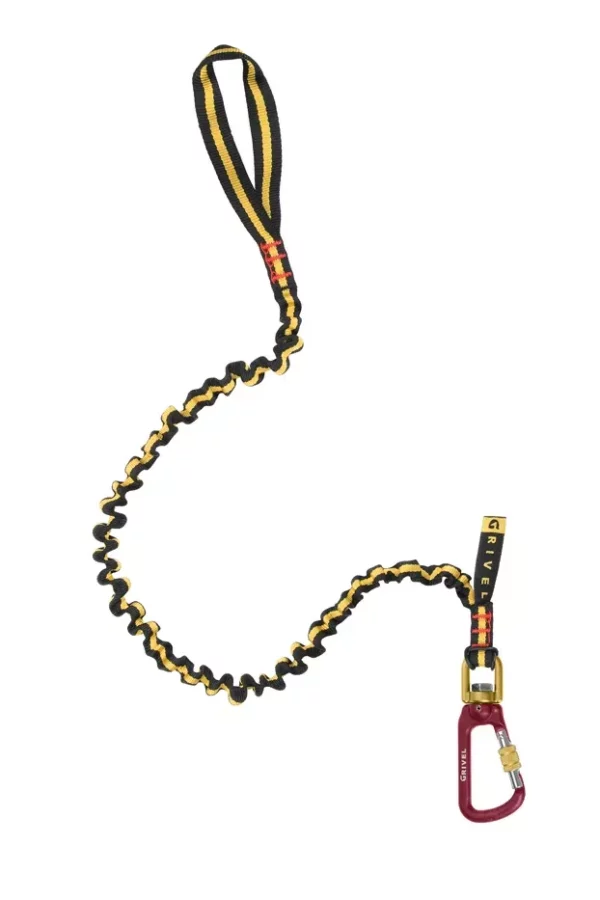 Slynge som sikrer øksene når du klatrer stroppeløst. Elastisk stropp er kort når det behøves og strekkes når du hugger.