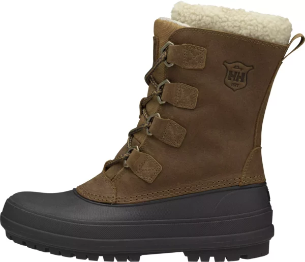 De ultimate støvlene i kaldt vær med et vanntett eksteriør og en varm Primaloft® isolert sokk. Varanger vinterstøvlene ser bra ut når får deg frem i snøen. De har den klassiske andestøvelsilhuetten med en værbeskyttende, vulkanisert nedre gummikant og en vannavstøtende, forseglet førsteklasses lærsøm øverst. Vi forbedret den nedre delen med vår HH® FreezeBlock aluminiumsskjermteknologi for å holde føttene tørre og varme. Sålen har vår beste teknologi for ekstra grep for å forhindre å skli på frosne overflater. På innsiden har støvelen en varm Primaloft® isolert sokk med kant av falskt saueskinn. Varanger vinterstøvler har en termisk klassifisering på –30–40 °C.