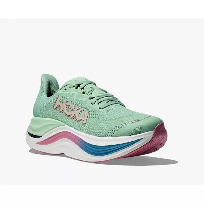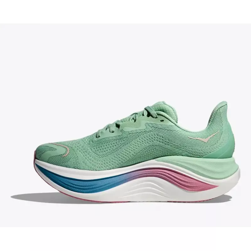 Vi tenkte helt nytt og utenfor boksen da vi utviklet Skyward X. Disse behagelige nye joggeskoene er fantastisk myke og lettløpte, og har et revolusjonerende fjæringssystem med en konveks karbonfiberplate som som skaper ekstra sprett for hvert steg. Nærmest foten er det plassert mykt, tilpasningsdyktig PEBA-skum som sikrer en responsiv, godt dempet løpetur, mens en konstruksjon i superkritisk EVA-skum danner et stabilt grunnlag som lar deg legge mil etter mil bak deg.
