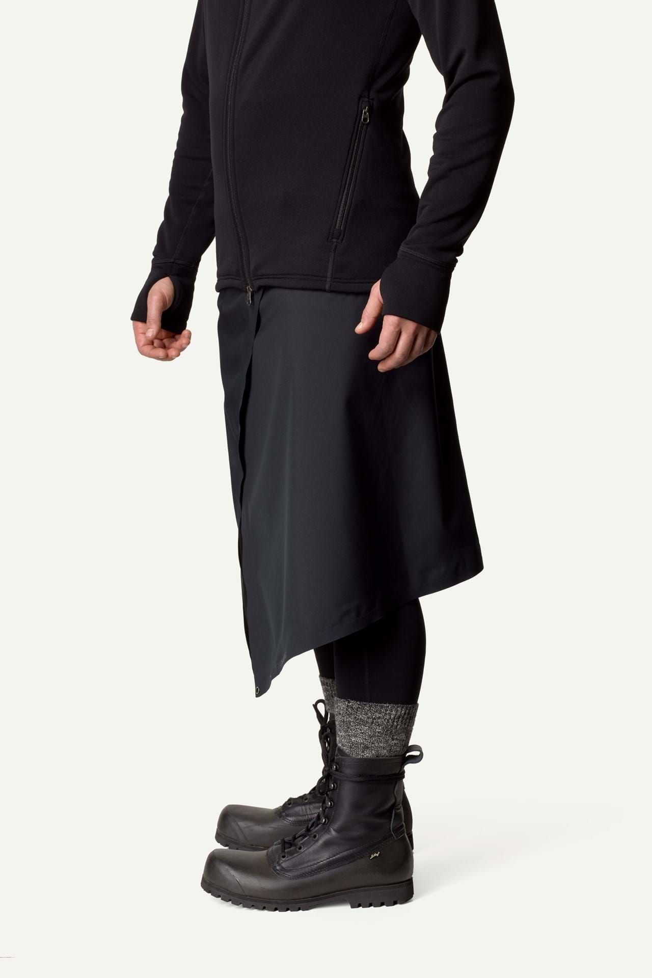 The Square er et ultra-minimalistisk vanntett skjørt i unisex. Det er konstruert som et omslagsskjørt og laget i tøft, tøyelig og lydløs Loop Hardshell-materiale.