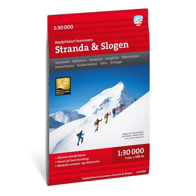 Calazo Høyfjellskart Sunnmøre Stranda & Slogen i målestokk 1:30 000 er et unikt kart med en detaljrikdom som aldri tidligere er vist over Sunnmøre. Terrenginformasjonen i kartet er basert på laserskanning fra fly. For første gang framtrer fjellskrenter, større steiner, vassdrag og breer med en presisjon som tilsvarer virkeligheten. Kartet inneholder også flere stier enn noe kart tidligere over samme område. Kartet vil også kunne brukes av de som ønsker å forlate merkede stier for å utforske egne ruter i høyfjellet.