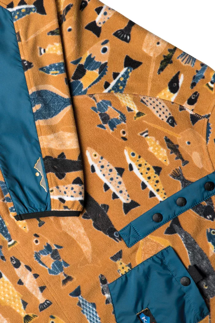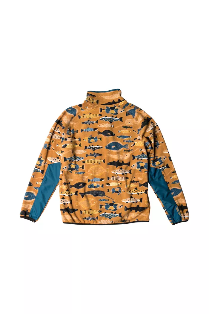 Fabric: Fabric: 7.5oz 100% certified recycled polyester, solid, color blocked and printed polar fleece – sublimation print.