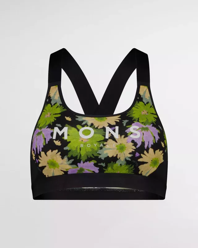 Mons Royale Stella X-Back Bra Womens Alpine Bloom/Black