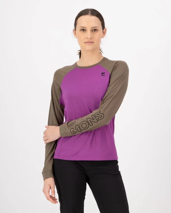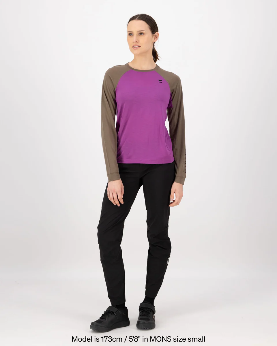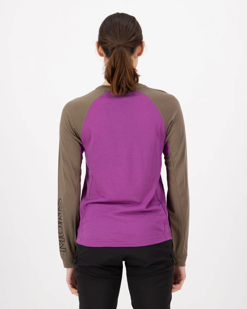Mons Royale Tarn Merino Long Sleeve Womens Purple Bolt/Walnut
