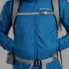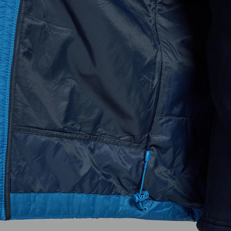 Yttermaterialet er et ripstop-nylonstoff med høy slitestyrke og vindtett egenskap, samtidig som vekten holdes lav. Innvendig benyttes en pustende fôrstruktur og kroppskartlagt syntetisk isolasjon – varm der du trenger det, lett der du vil ha bevegelsesfrihet. Hette og snitt er designet med tanke på aktiv bevegelse og bruk under sekk eller ryggsekkstropp, og jakken har funksjonelle lommer og justerbare avslutninger for optimal komfort.