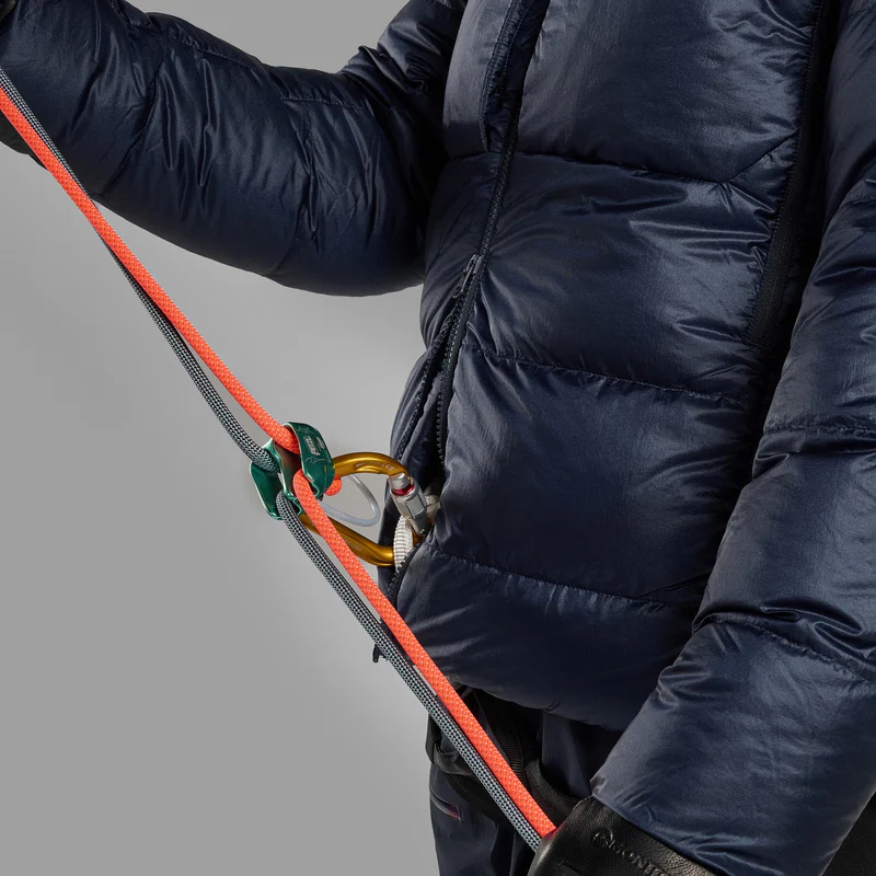 Den tekniske passformen og formsydde panelene gir optimal bevegelsesfrihet ved klatring og aktivitet. Jakken er utstyrt med en hjelmkompatibel hette, toveis frontglidelås, to håndlommer, en brystlomme og innvendige oppbevaringslommer. Mansjettene er elastiske for tett passform, og nederkanten kan justeres for å holde på varmen.