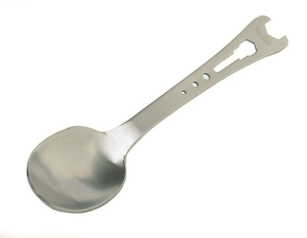 Skje i rustfritt stål med nødvendig verktøy for MSR brennere.