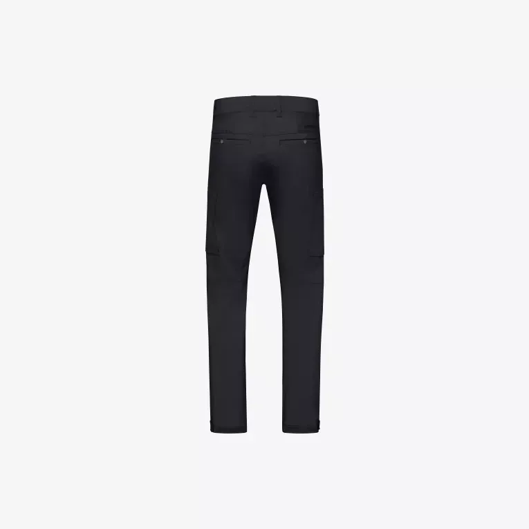 Viktige funksjoner inkluderer: Et minimalistisk Custom-Fit-midjesystem, stramming nederst, beltehemper, håndlommer med skjult myntlomme med glidelås og to baklommer.