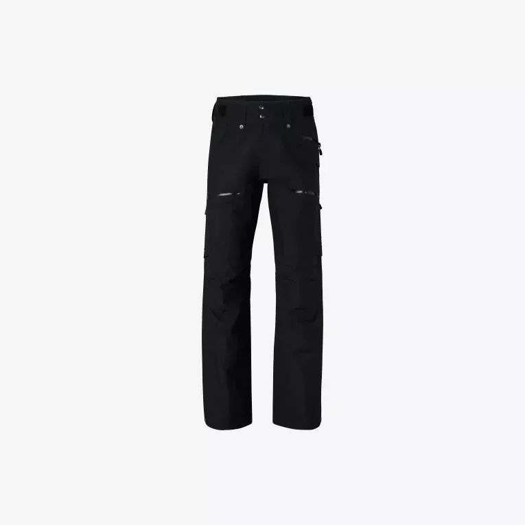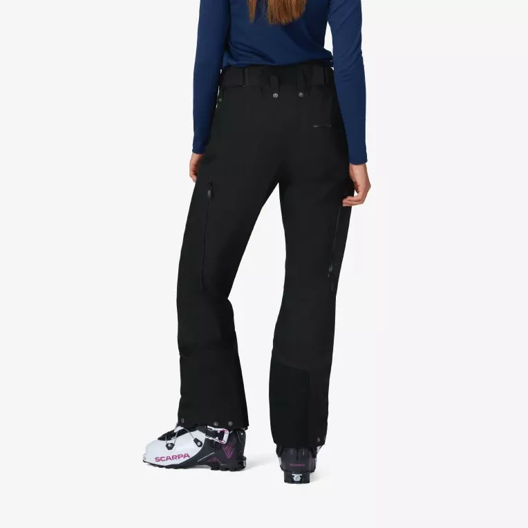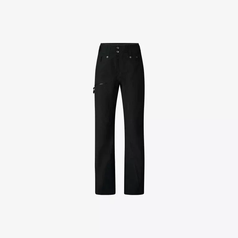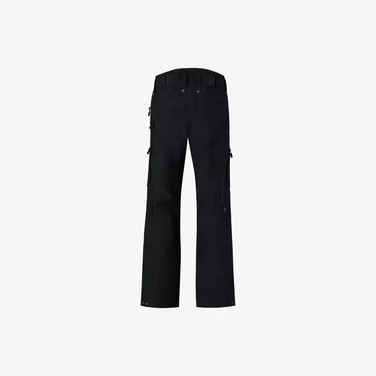 Viktige funksjoner inkluderer: Et skreddersydd midjesystem, to håndlommer med glidelås, lårlomme med glidelås, en baklomme, nettingfôrede sideventilasjoner fra øvre del av låret til kneet, forsterket nedre benkant med trykknapper og snøgamasjer. De er kompatible med vårt pudderskjørt med glidelås, trykknappsystem og smekke.