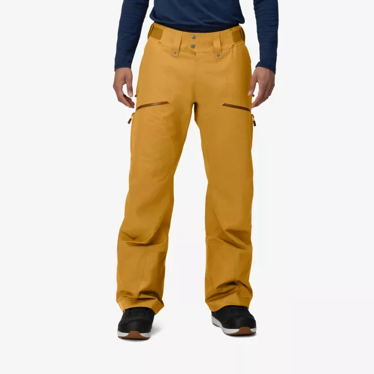 Hovedfunksjoner: Et tilpasset midjesystem, sideventilasjon med puddernetting, vectranforsterkning rundt anklene for å beskytte mot stålkanter, to frontlommer med glidelås på låret, én med nettinglomme på innsiden for telefon, to håndlommer, snømansjetter, trykknapper for pudderskjørt fra Norrøna-ski-/snøbrettjakker, mulighet for glidelås i selebuksen.