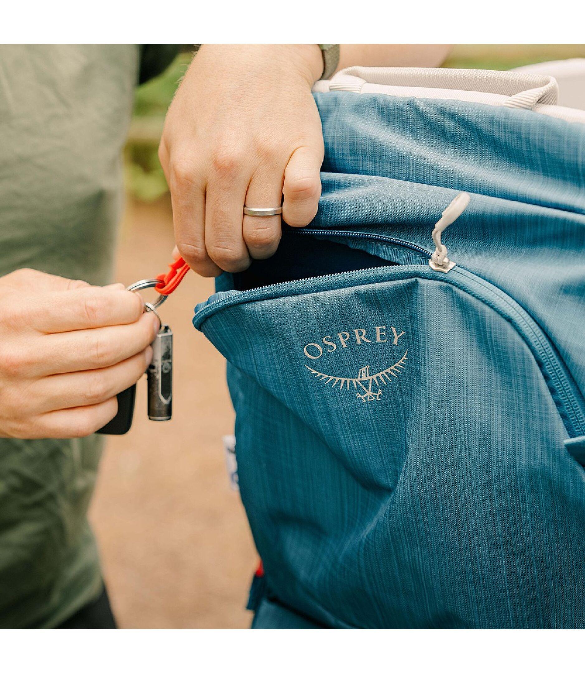 - Zippered upper pocket with key clip