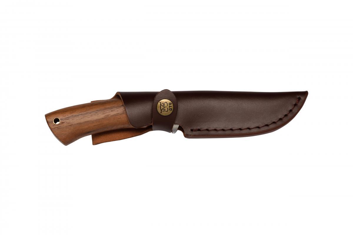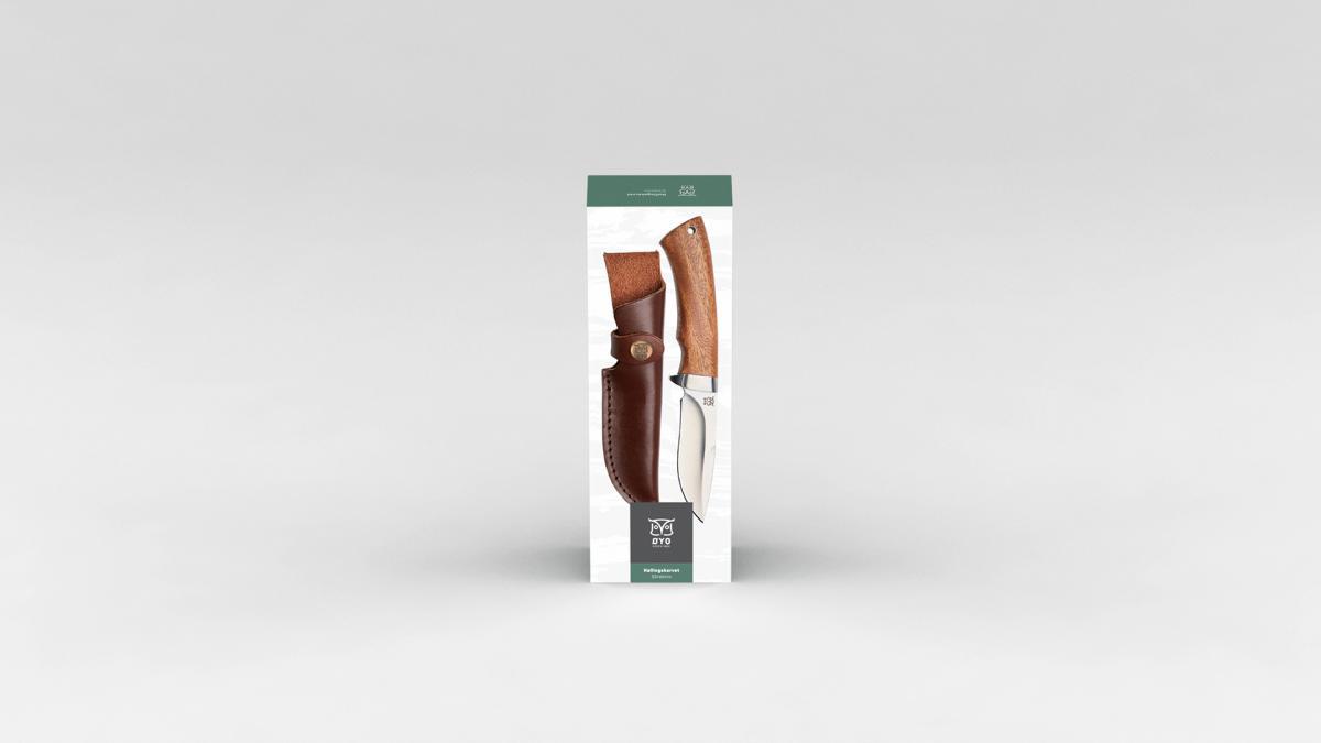 Hallingskarvet slirekniv er turkniven som passer for både jegere og friluftsfolk. Knivbladet som er kon- og hulslipt. Skaftet i valnøttre har en fingerstopper for økt sikkerhet og er ergonomisk formet slik at det ligger godt i hånden. Skinnsliren har en knapp for å sikre kniven i sliren.