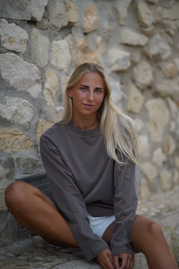 Pre Après Boxy Washed Long Sleeve Soft Brown