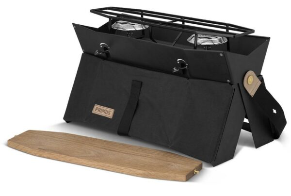 Onja er Primus's mest kompakte kjøkken med to brennere. Takk være bærestroppen er kjøkkenet enkelt å bære med seg og fungerer akkurat like bra i byparken som på helgetur med kajakken. Når kroppen er utfelt blir det en stabil matlagingsenhet som også beskytter brennerne fra vinden. Oversiden er dekket med et eklock som fungerer som skjærebrett eller serveringsfat. Passer alle vanlige gassbeholdere med gjenger. Perfekt om man vil ta med seg kjøkkenet på tur.