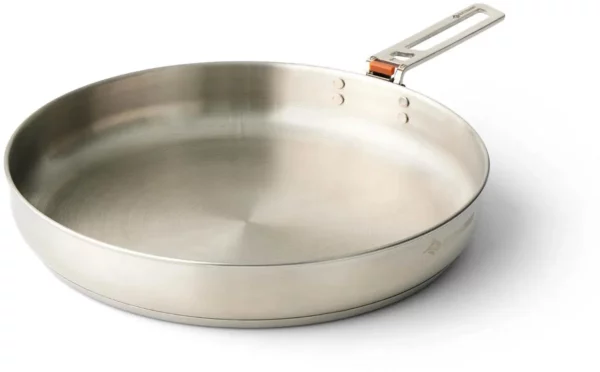 Et holdbart og effektivt tillegg til turkjøkkenet! Detour panna fra Sea To Summit er en 3-lags panne med jevn varmefordeling og er særlig kompatibel med gass, men også på konvensjonelle stekeovner. Pannen kommer med en Click-Safe som gjør at håndtaket kan legges over, slik at den blir lettere å transportere. Pannen har en diameter på 26 cm og rommer 2 liter