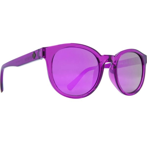 Vi kan ikke love at du blir uovervinnelig med HI-Fi Crystal-solbriller, men du vil iallfall få folk til å tenke at du ser bra ut. Lett avrundet form, transparent ramme i knallfarge og lilla linser med speileffekt. 100% UV-beskyttelse. Logo i metall på siden. Stangfeste i metall (pin) for mer solid feste.