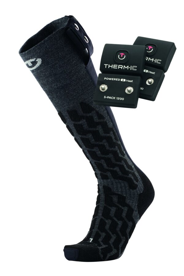 Unisex skisokker med varmeelement og S-Pack 1200 batterier med lader. Anatomisk design for perfekt passform.Enkelt feste av batterier til sokken.Optimalisert integrering av varmeelementene for garantert lang levetid.Kan vaskes opp til 30°CPolstret forsterkning under foten: maksimal komfort, bedre varmesirkulasjon, tå- og hælbeskyttelse