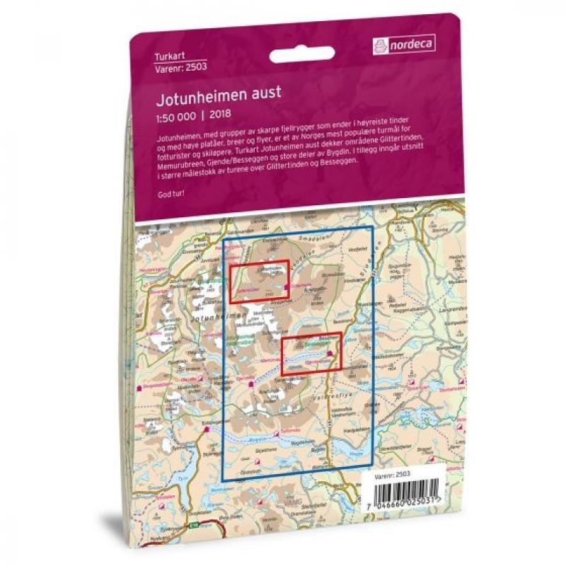 - Kartet dekker Bygdin, Gjende, Glittertinden, Valdresflye og Vinstre