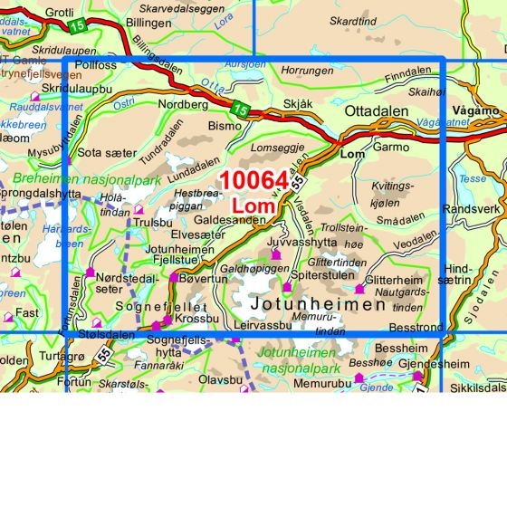 - Kartet dekker Bøverdalen, Glittertinden, Jotunheimen og Sognefjellet